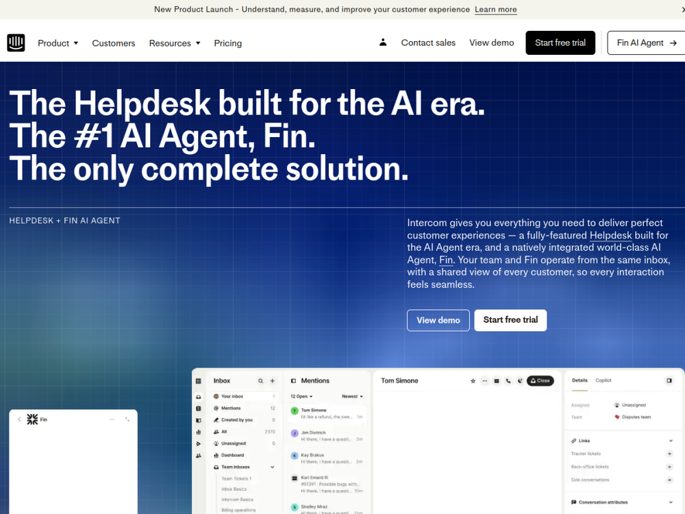 Intercom combines an AI agent and a helpdesk to streamline customer support.